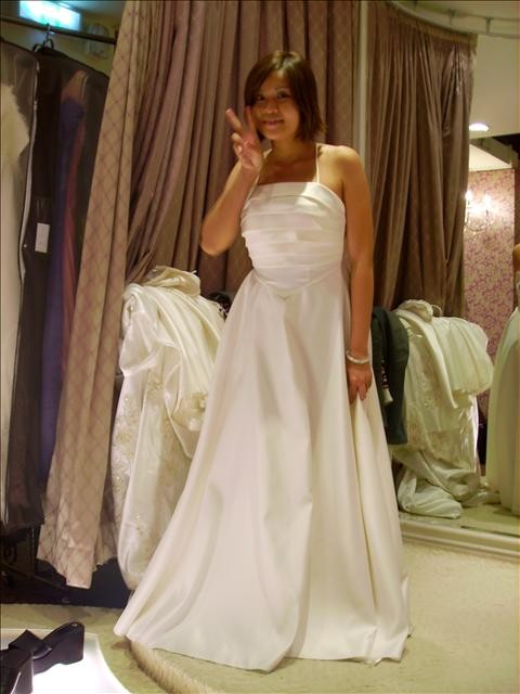 我挑到我喜歡的白紗,我喜歡的晚禮服一件,還有肥仔覺得好看的晚禮服............(衣服,肥仔手抖抖的,天暗暗的,都晃動了,沒有清楚的.......天ㄚ。)