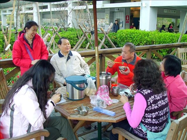 我們又經過一陣的車程之後也在大峽谷的涼亭下野炊起來了。登山隊果然是登山隊,我們總共有3台的飛碟爐,一個炒菜鍋,兩個悶燒鍋,還有兩個冰箱,一組茶具組,兩個鐵鍋,兩把菜刀,青菜兩箱,牛肉,羊肉,大蝦,4隻雞,4瓶酒,一堆火鍋料,香腸,米一堆麵條,蝦捲雞捲還有一堆丸子.....可以想到的通通可以帶來,海鮮是吧,有,山產是吧,有,稀有產品鮑魚!?當然也有。蛋呢!? 很難攜帶的蛋呢!? 有啦,還有菜圃呢。.....真的是你可想到的應有盡有。OH,天知道這些食物讓我們這幾天每天吃5餐,還吃不完呢.......